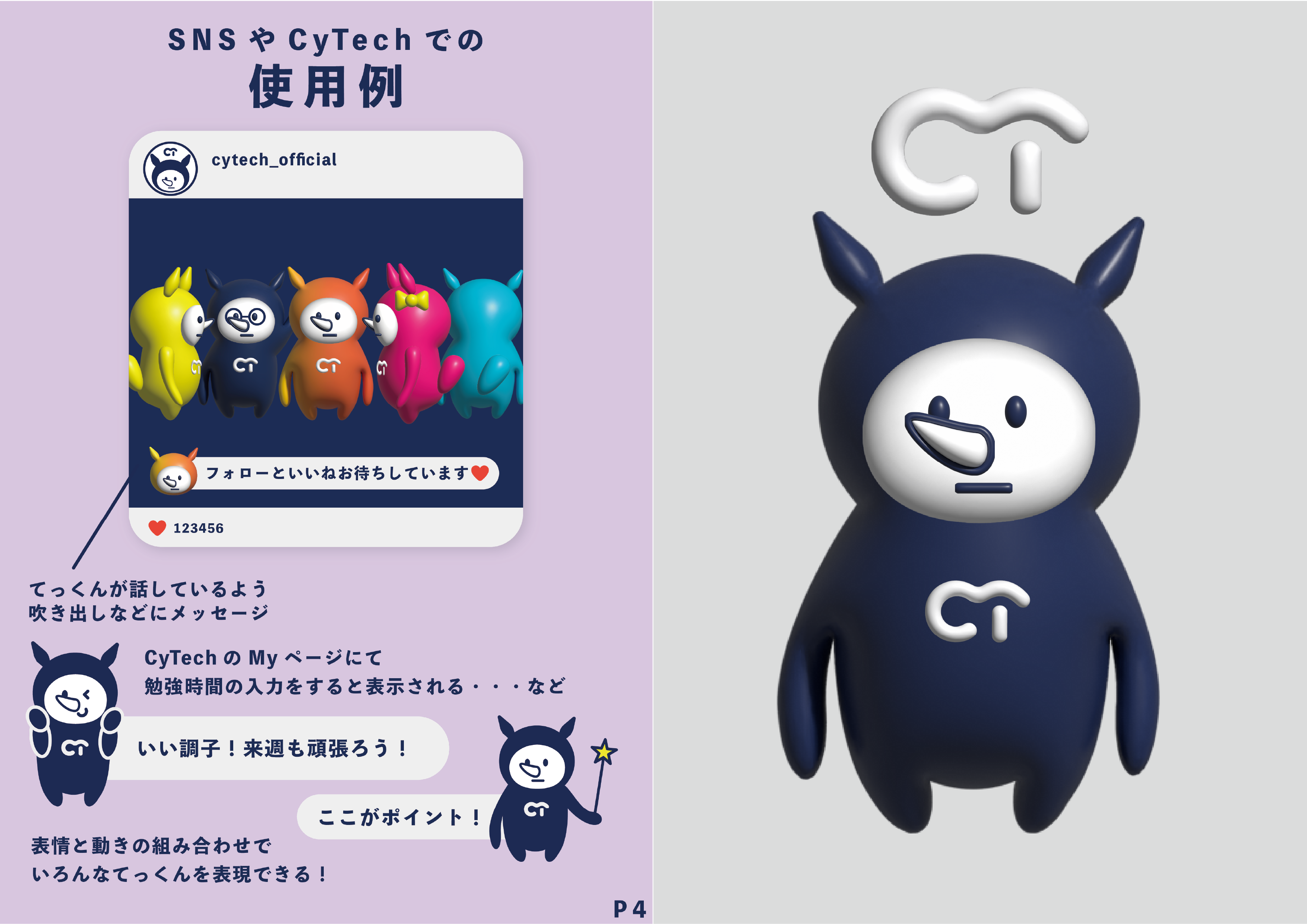 この作品は、プログラミング学習アプリ「CyTech(サイテック)」のデザインオーディションに向けて制作したモチーフキャラクターです。 10代〜30代の学習者が親しみを持ち、学習を続けたくなる“相棒感”を目的にデザインしました。 ※本キャラクターはCyTechの公式キャラクターではなく、オーディション提出用として制作したものです。