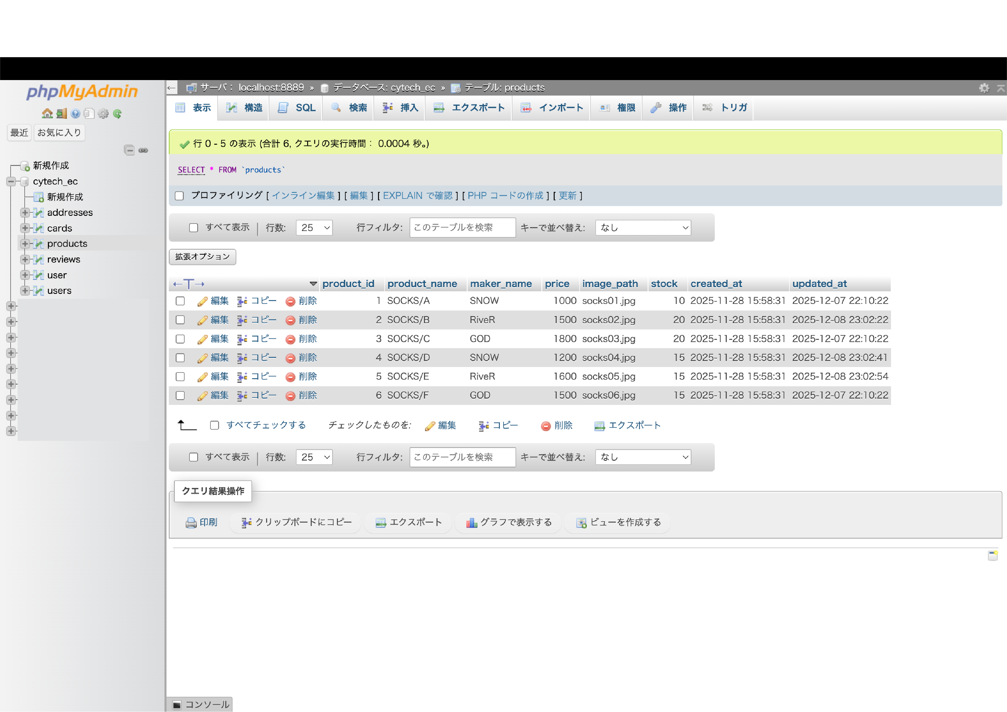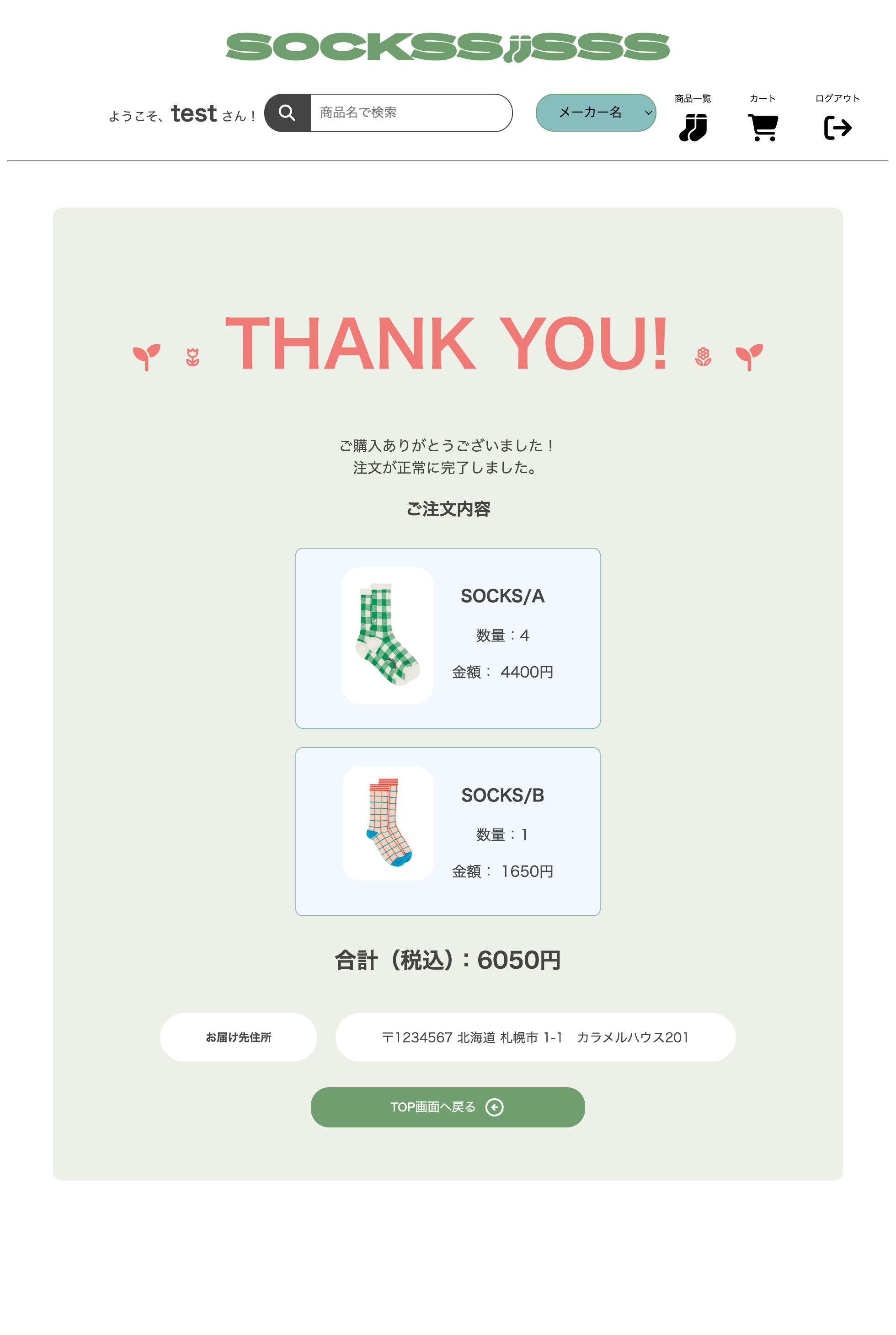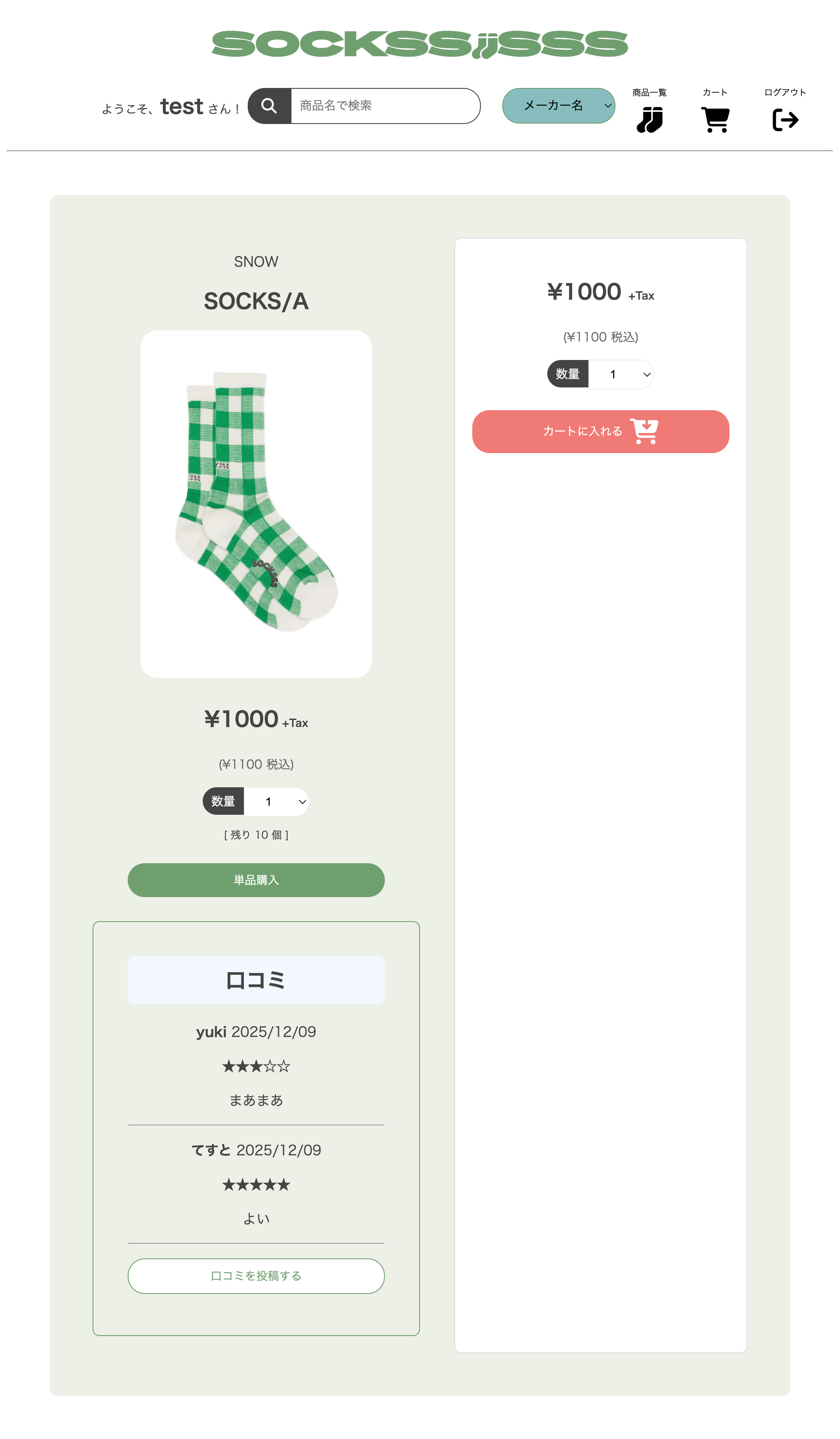 商品一覧表示・カート機能・購入処理など、ECサイトの基本機能を実装しています。