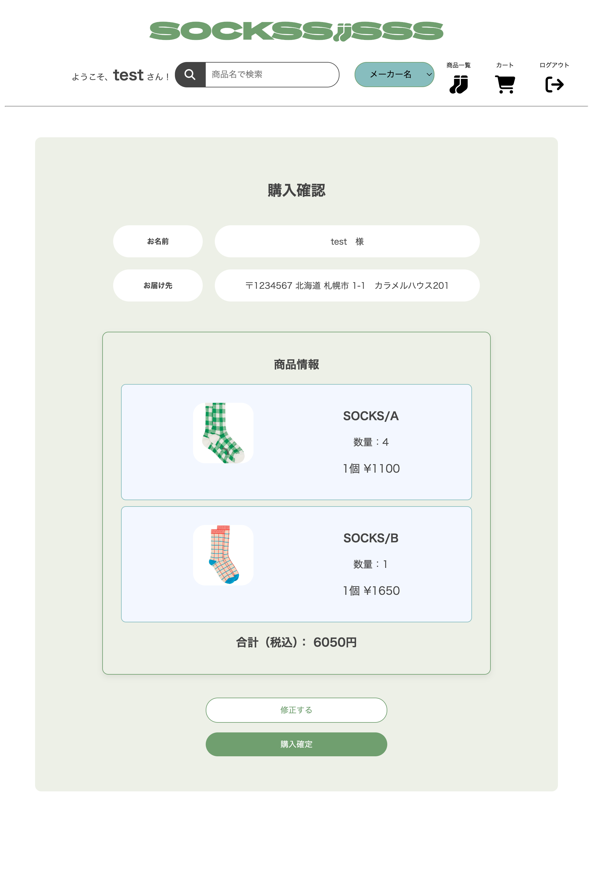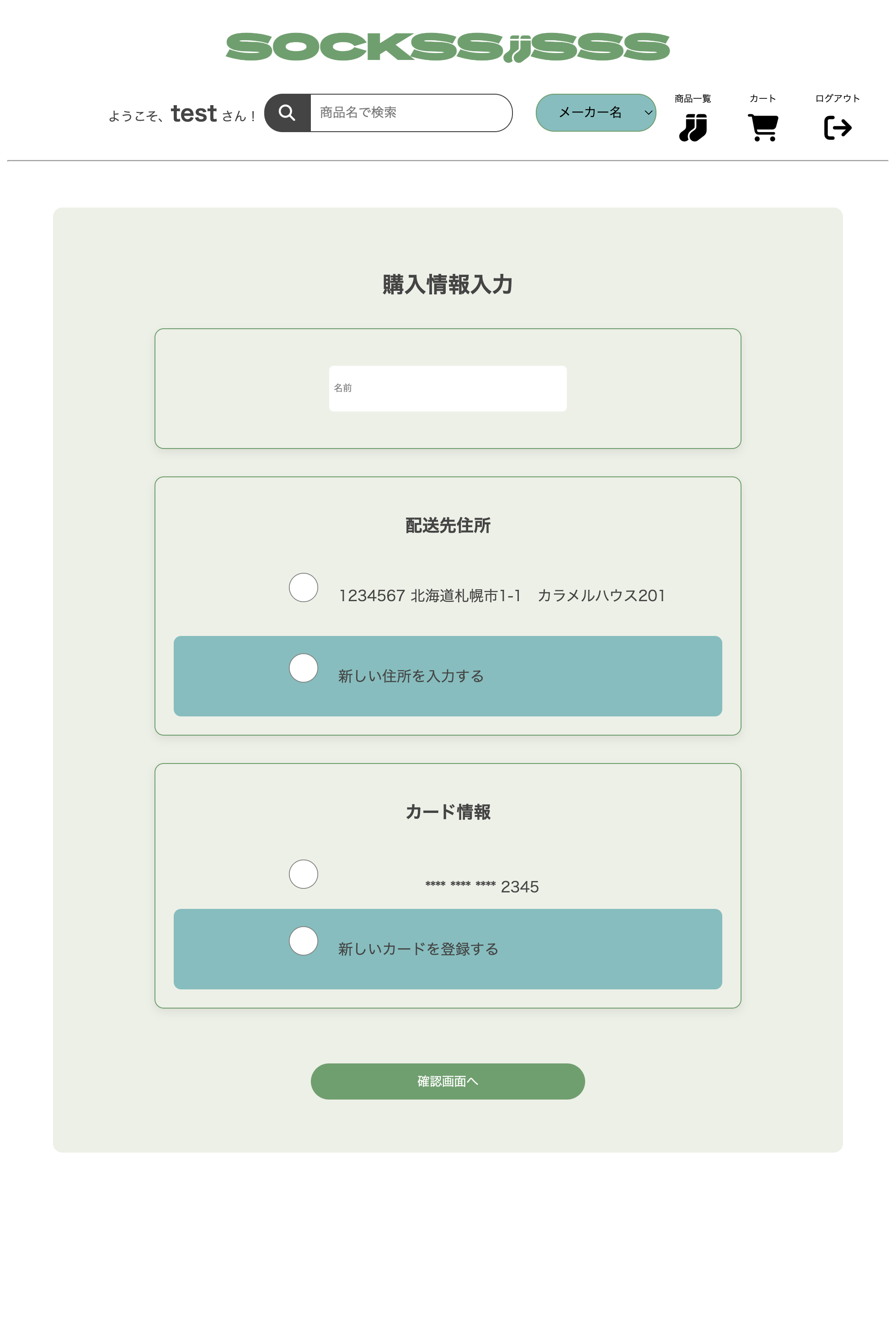 カートに追加した商品情報をセッションで管理し、ページ遷移後も状態が保持されるよう実装しました。